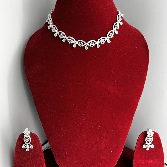 Fashion Premium - Elegant Floral Design Mint Green AD/CZ Stone Necklace Set