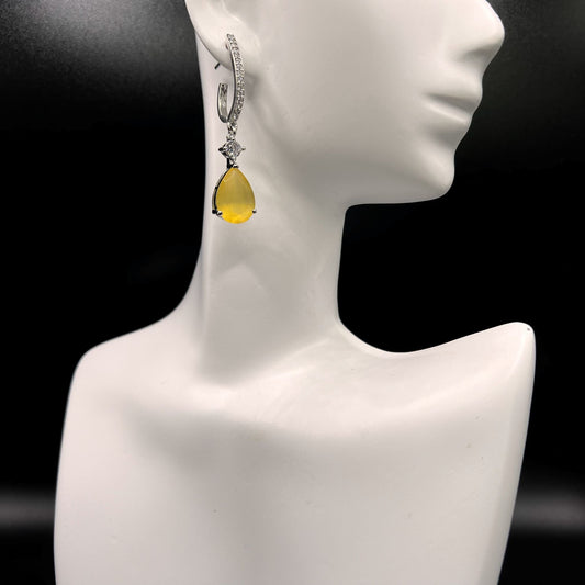 Fashion - Classic Yellow Color AD/CZ Stone Hoop/ Dangler Earrings