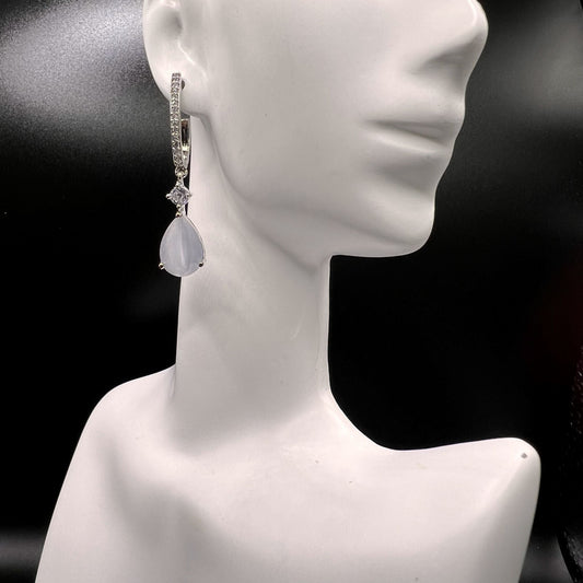 Fashion - Trendy Grey Color AD/CZ Stone Hoop/Dangler Earrings