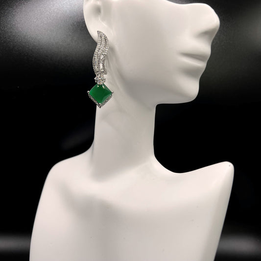 Fashion - Designer Trendy Green Color AD/CZ Stone Hoop/Dangler Earrings