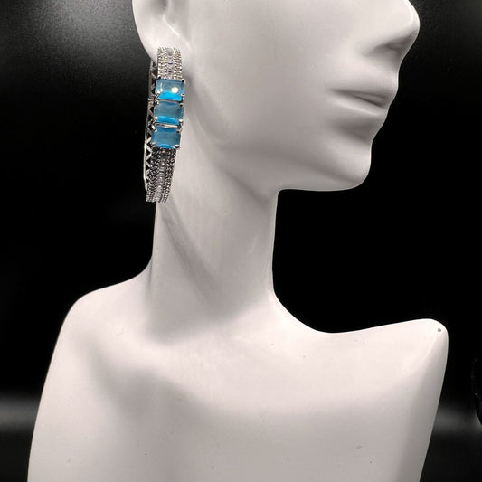 Fashion - Designer Trendy Blue Color AD/CZ Stone Hoop Earrings