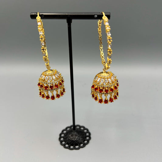 Fashion - Classic Red Color AD/CZ Stone Hoop/Jhumka Earrings