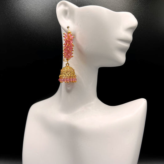 Fashion - Classic Pink Color Antique Traditional Jhumka Earrings