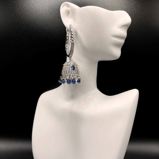 Fashion - Designer Classic Navy Blue Color AD/CZ Stone Jewelry Hoop/Jhumka Earrings
