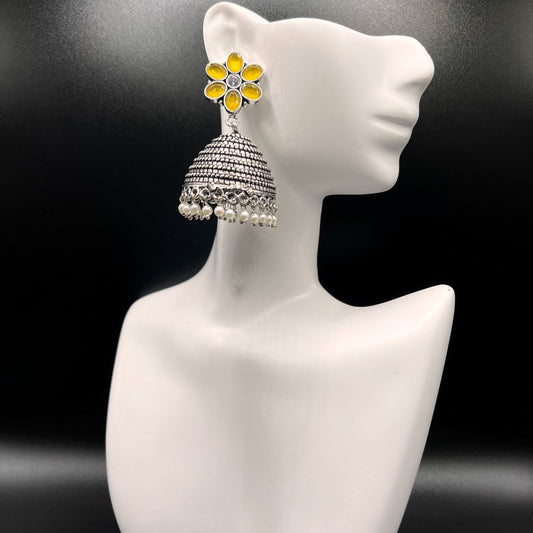 Fashion - Classic Yellow Color Oxidized/Silver Tone Jhumka Earrings