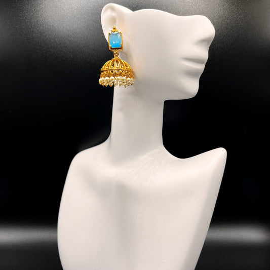Fashion - Classic Aqua Blue Color Antique Traditional Jhumka Earrings