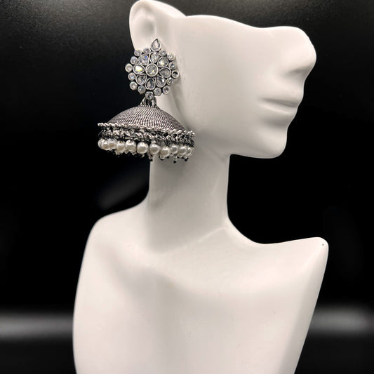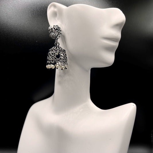 Fashion - Classic Silver Color Oxidized/Silver Tone Jhumka Earrings