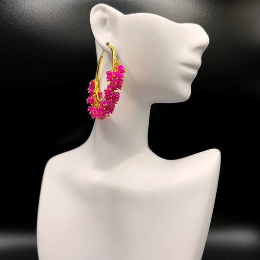 Fashion - Classic Hot Pink Color Antique Traditional Hoop Earrings