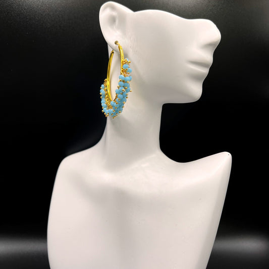 Fashion - Classic Aqua Blue Color Antique Traditional Hoop Earrings