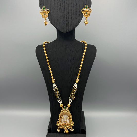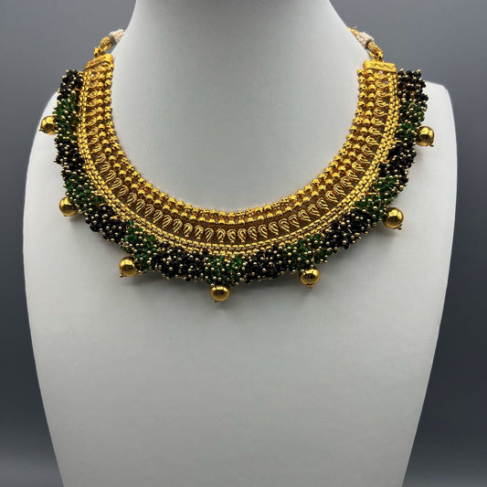 Fashion - Classic Rajwadi Design Green Antique Traditional, Bead Mix Necklace Set