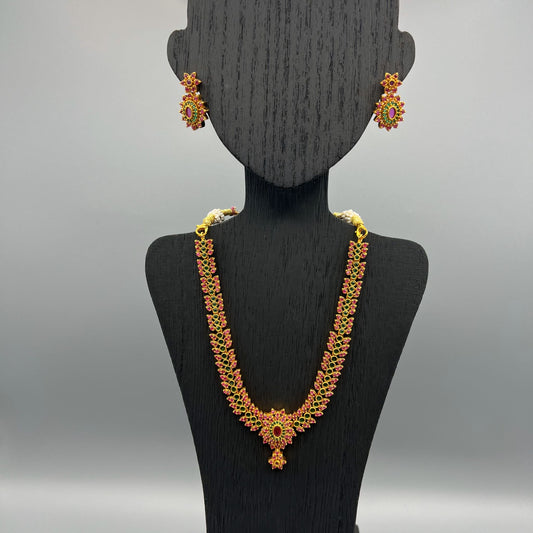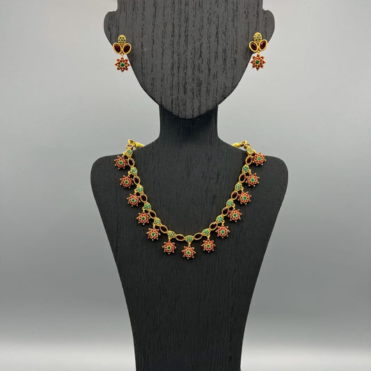 Fashion - Elegant Floral Motifs Design Ruby Pink & Green Antique Traditional Necklace Set