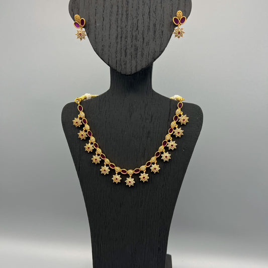 Fashion - Classy Floral Motifs, Ruby Pink & White Antique Traditional Necklace Set