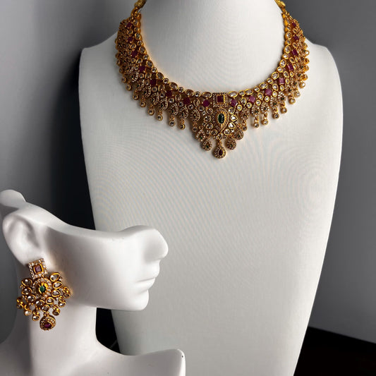 Fashion - Elegant Multi Color Motifs Antique Traditional Necklace Set