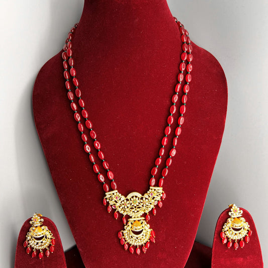 Fashion Premium - Elegant Dual Strand of Red Beads Antique Traditional, Bead Mix Long Necklace Set