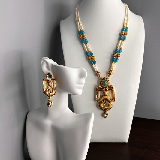 Fashion - Bead Work Turquoise Blue Antique Traditional, Bead Mix Necklace Set