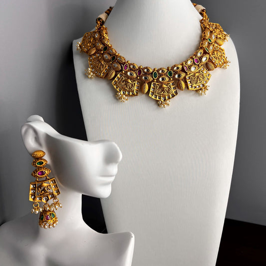 Fashion - One-Of-A-Kind Ruby Pink & Green Antique Traditional Necklace Set