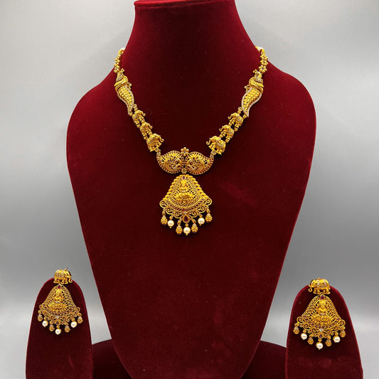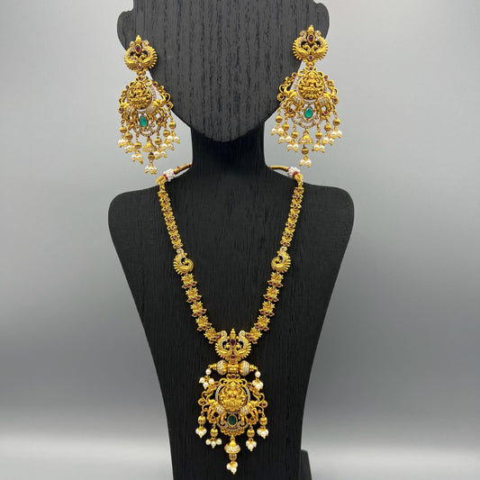 Fashion - Gold Replica Goddess Lakshmi With Peacock Design Antique Traditional Necklace Set