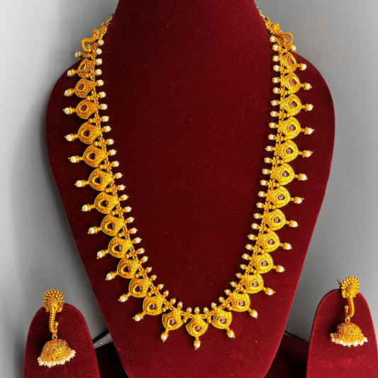 Fashion Premium - Exclusive Festive Ruby Pink Antique Traditional Necklace Set