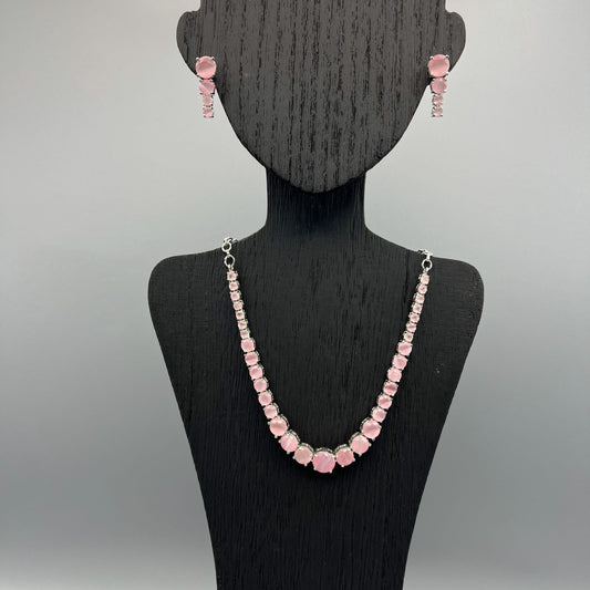 Fashion - Simplistic Pink AD/CZ Stone Necklace Set