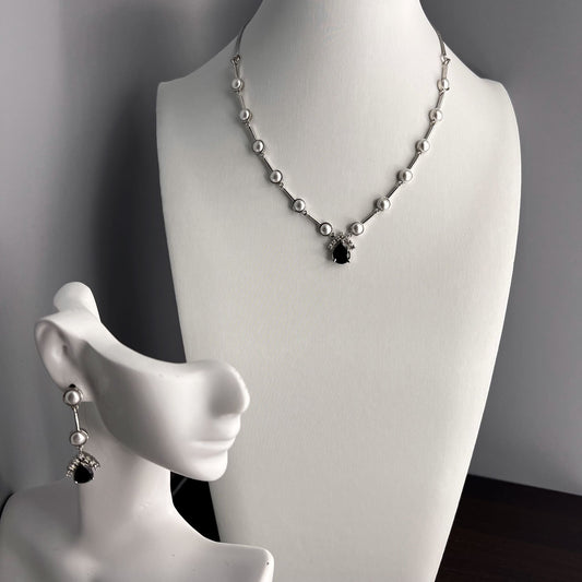 Fashion - Designer Minimalist Pearl & Black AD/CZ Stone Necklace Set