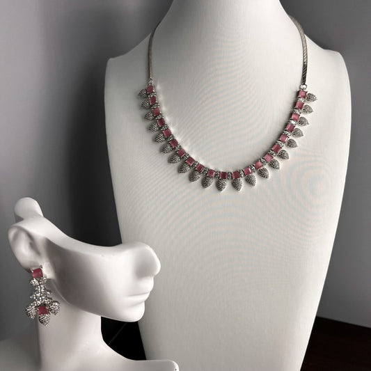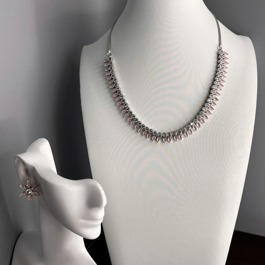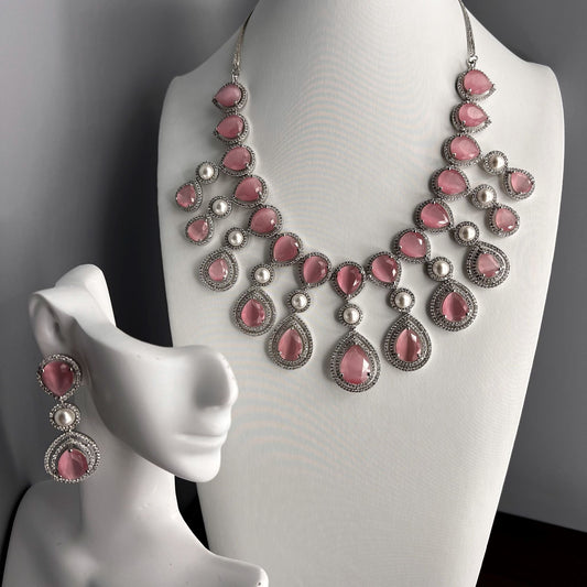 Fashion - Delicate Pink AD/CZ Stone Necklace Set