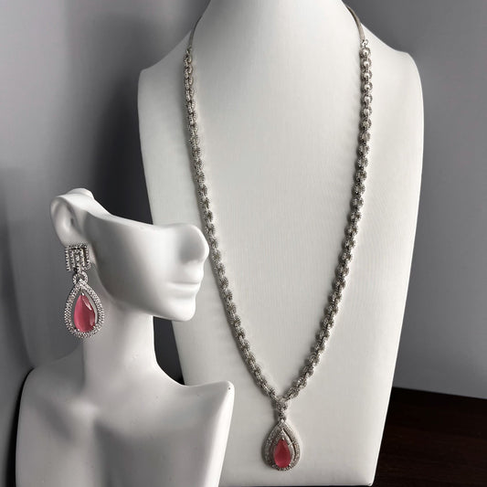 Fashion - Classy Looking Pink & White AD/CZ Stone Long Necklace Set
