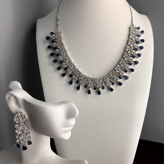 Fashion - Bestseller Navy Blue & White AD/CZ Stone Necklace Set