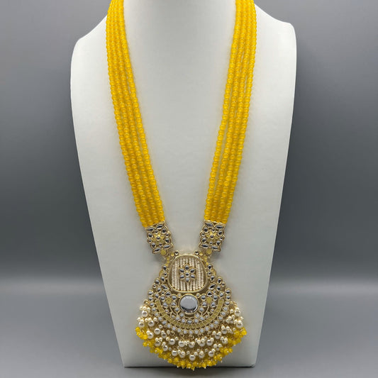 Fashion - Statement Yellow Kundan, Bead Mix Long Necklace Jewelry Set