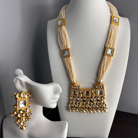 Fashion - Attractive Designer White Color Kundan, Bead Mix Necklace Set