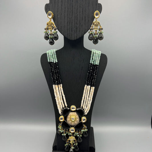 Fashion - Exclusive Designer Meenakari Enamel Work Black & Mint Green Kundan, Bead Mix Long Necklace Set