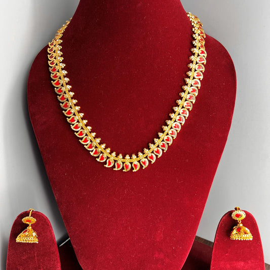 Fashion Premium - Classic Red Mango Motif Design Antique Traditional Long Necklace Set