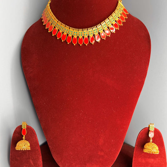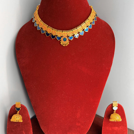 Fashion - Unique Enamel Work Kerala Style Blue, Red Antique Traditional Necklace Set