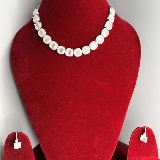 Fashion - Trendy Grey Monalisa Stone Necklace Set
