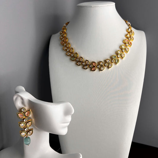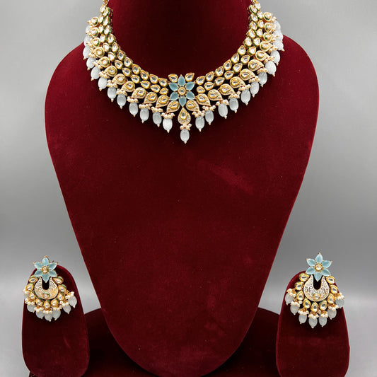 Fashion Premium - Gorgeous Designer Statement Light Blue Kundan & Meenakari Work Necklace Set