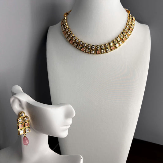 Fashion - Pretty Pink & White Antique Traditional Meenakari Work Necklace Set