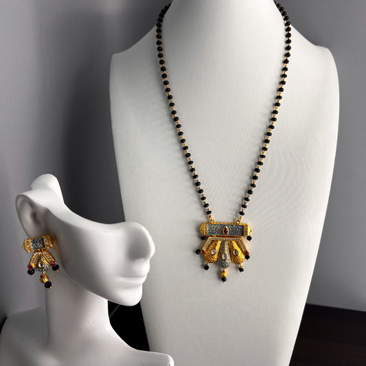 Fashion - Meenakari Enamel Work Aqua Blue Kundan, Mangalsutra Necklace Set