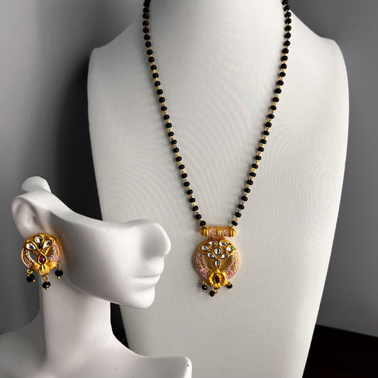 Fashion - Meenakari Work Pink Kundan, Mangalsutra Necklace Set