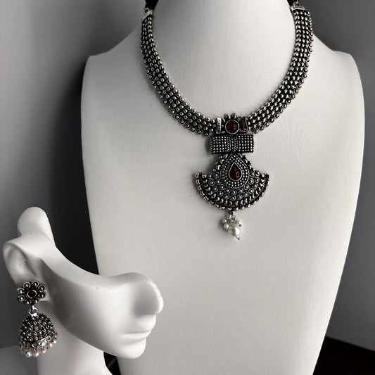 Fashion - Classic Ruby Pink Oxidized Necklace Set