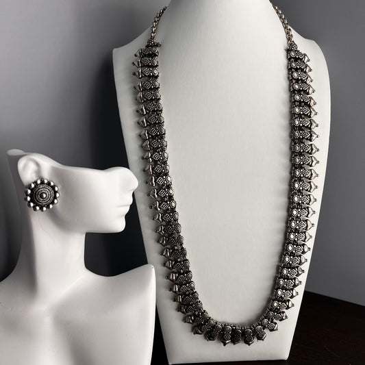 Fashion - Classic Heart Shaped Motifs Silver Oxidized Long Necklace Set