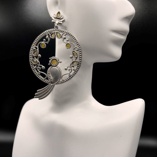 Fashion - Peacock Design Trendy Yellow Color Oxidized/Silver Tone Dangler Earrings