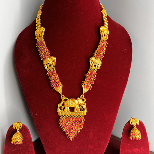 Fashion - One-of-a-kind Elephant Pendant Red Bead Antique Traditional Necklace Set