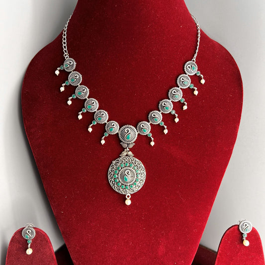 Fashion - Green Peacock Motifs Oxidized Necklace Set