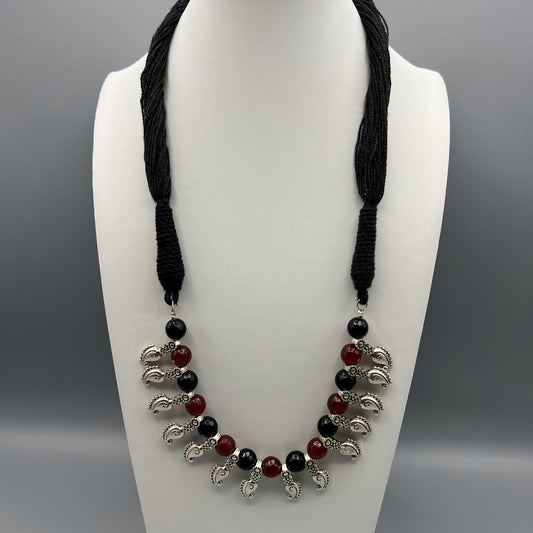 Fashion - Mango Motif Black & Red Agates Oxidized Necklace Set